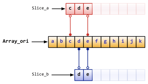 slice是引用类型,所以当引用改变其中元素的值时,其它的所有引用都会改变该值,例如上面的aSlice和bSlice,如果修改了aSlice中元素的值,那么bSlice相对应的值也会改变。