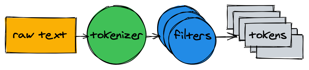 一个文本分析器包含了一个分词器和多个过滤器。